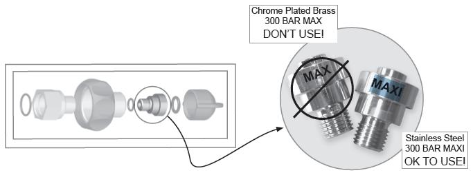 5. 瑕疵情形:技術人員在安裝DIN潛水止滑扣時過緊可能導致止滑扣在壓力下破裂,氣瓶內的空氣會快速洩漏,調節器從氣瓶上脫離,造成潛水者溺死的危險。