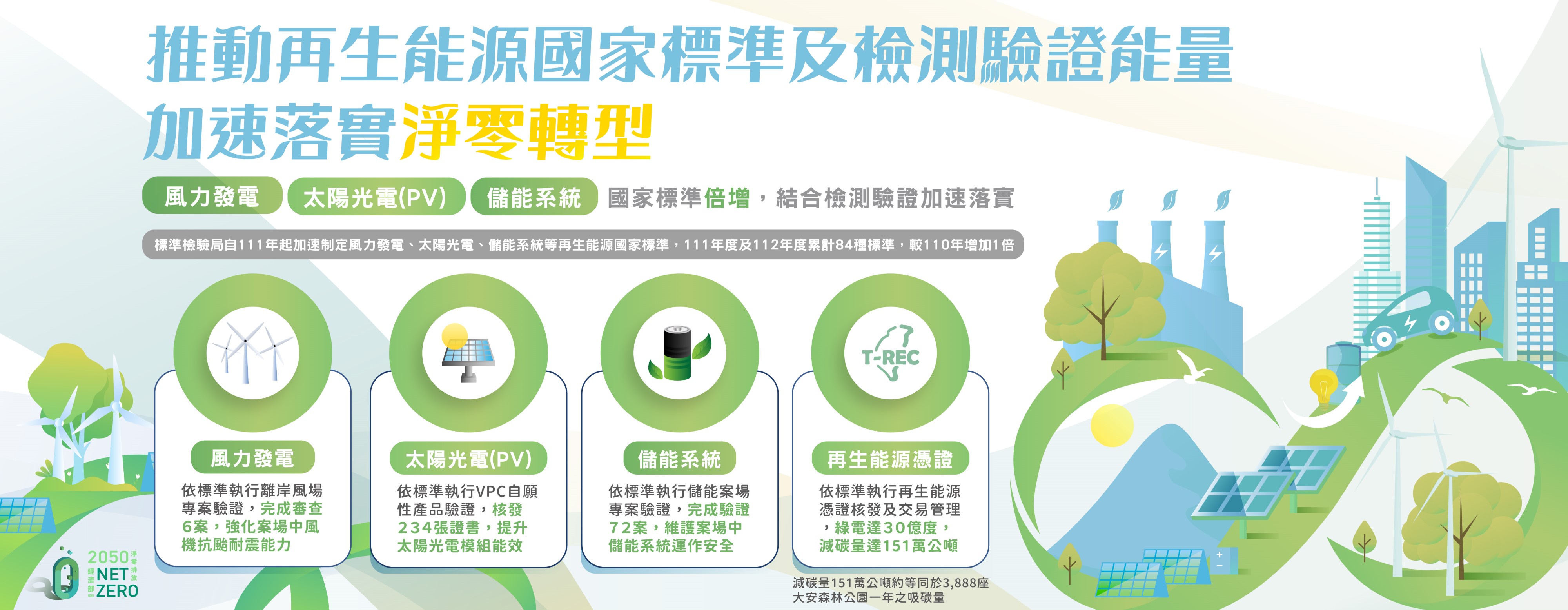 標準局積極推動再生能源國家標準及檢測驗證能量,加速落實淨零轉型