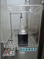 衝擊吸收試驗機(單軌式)、耐穿透試驗機、難燃性裝置、配戴試驗裝置、頭盔剛性試驗裝置、高溫箱、低溫箱、浸水處理裝置、灑水淋雨裝置…等 |