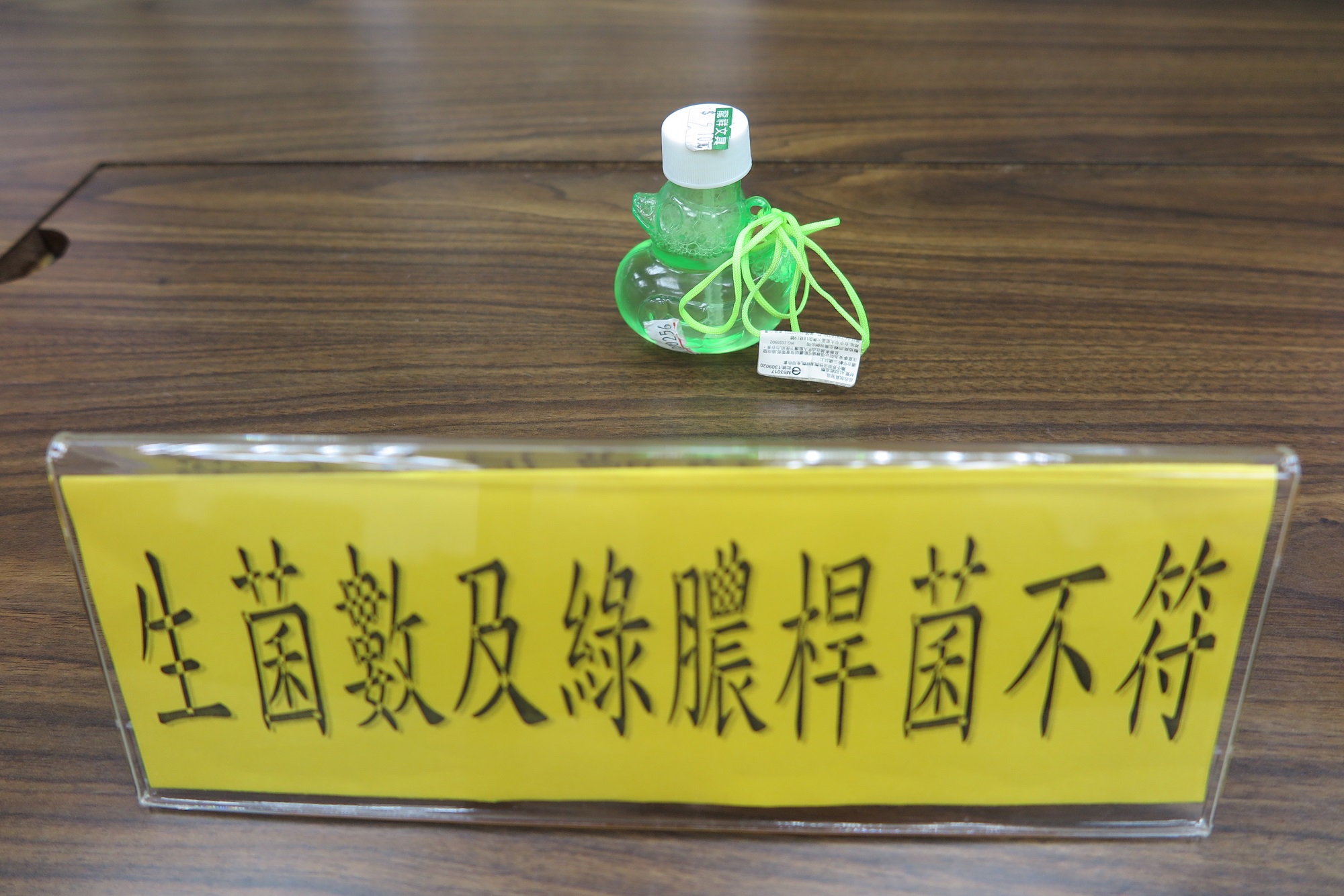 2. 「綠膿桿菌」:1件(項次9)檢出「綠膿桿菌」,而國家標準規定不得檢出。