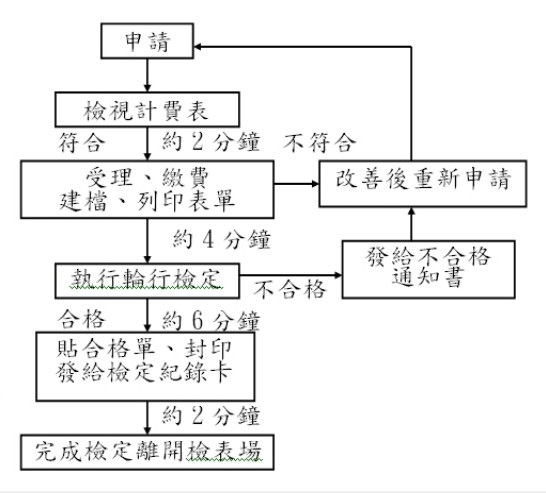 檢定標準:依據經濟部標準檢驗局計程車計費表檢定檢查技術規範。