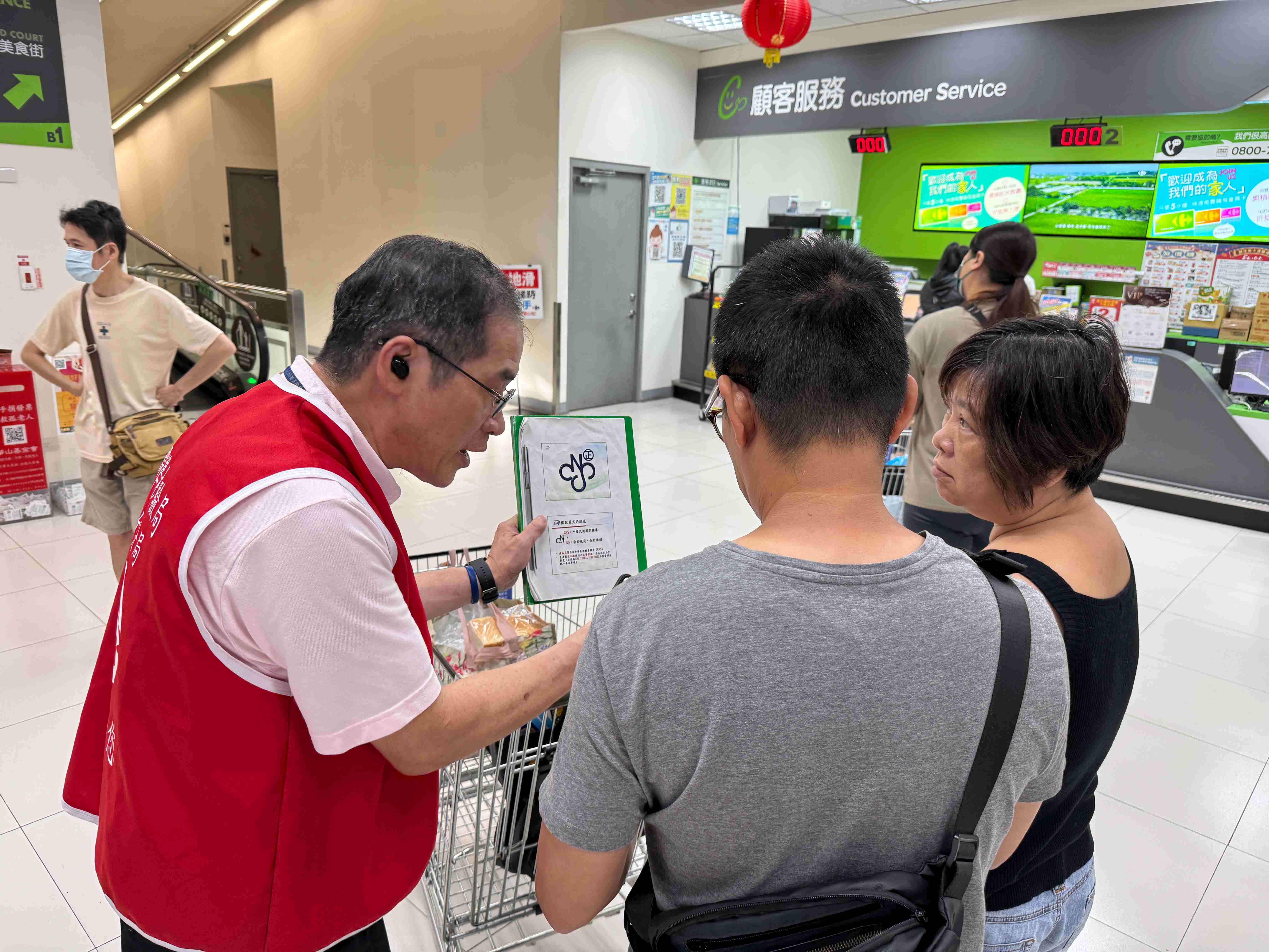 於家福股份有限公司平鎮分公司辦理「認識安全標章」宣導活動,以發送文宣品、提供辨識應施檢驗商品服務等方式,對民眾宣導認識應施檢驗商品、選購正字標記產品等商品安全資訊。