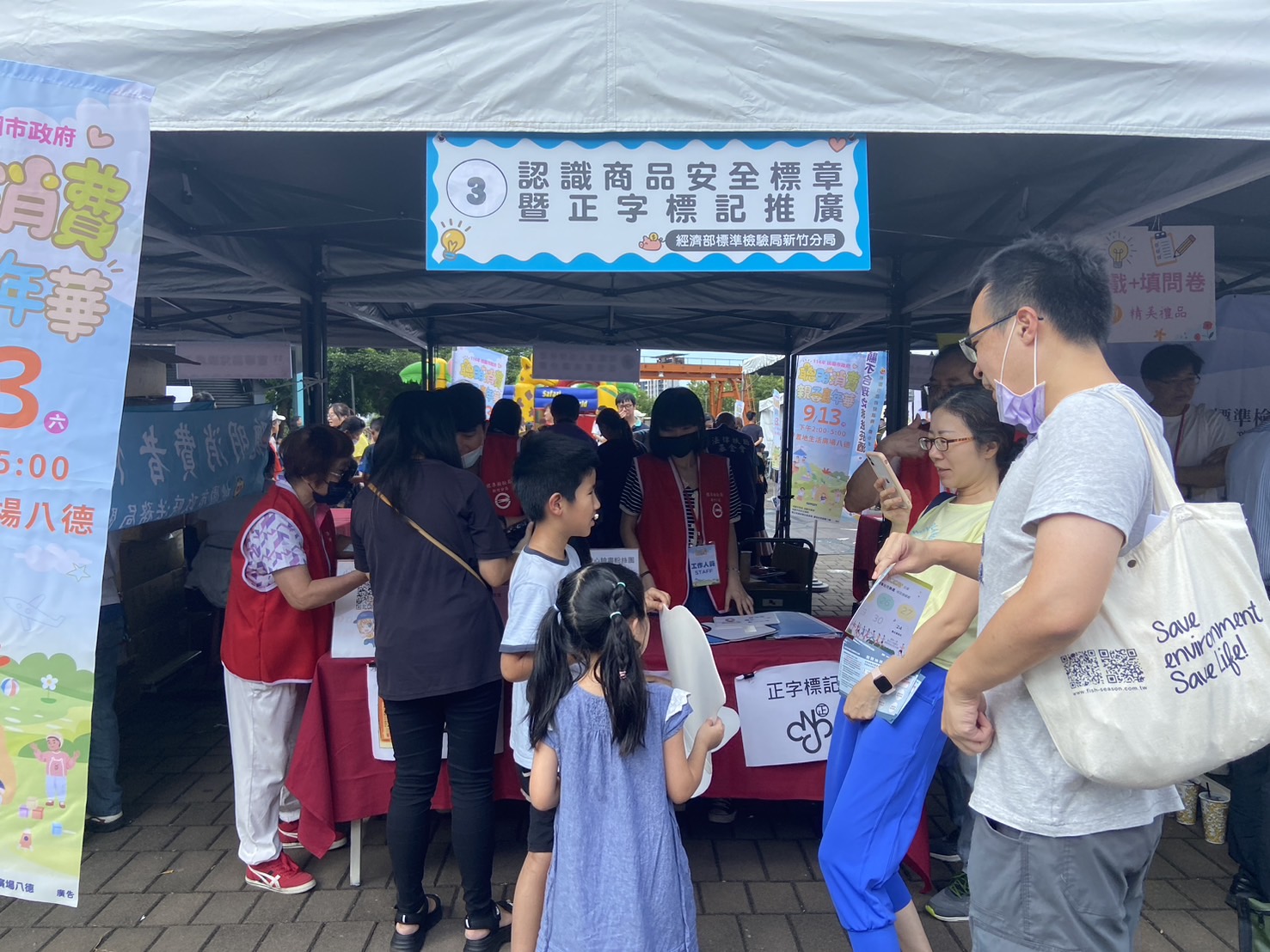 配合桃園市政府法務局在桃園市置地生活廣場舉辦之「114年聰明消費親子嘉年華活動」辦理「認識商品安全標章暨正字標記推廣」宣導活動,以加入小安心臉書粉絲團、社群媒體拍照打卡、宣導圖片拼圖遊戲、觀看本局「認識商品檢驗」影片後快問快答、發送宣導品及提供辨識應施檢驗商品服務等方式,對民眾宣導認識應施檢驗商品、選購正字標記產品等商品安全資訊。